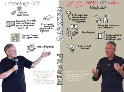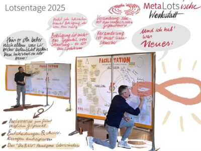 Die Lotsentage sind Treffpunkt für Kolleginnen, Klienten und Alumni unserer Fortbildungen und Beratungsprojekte. Sie sind eine schöne Gelegenheit für Menschen aus den Lerngruppen des Facilitator Curriculum und der Masterklassen zum Wiedersehen, Anknüpfen und Vertiefen.
